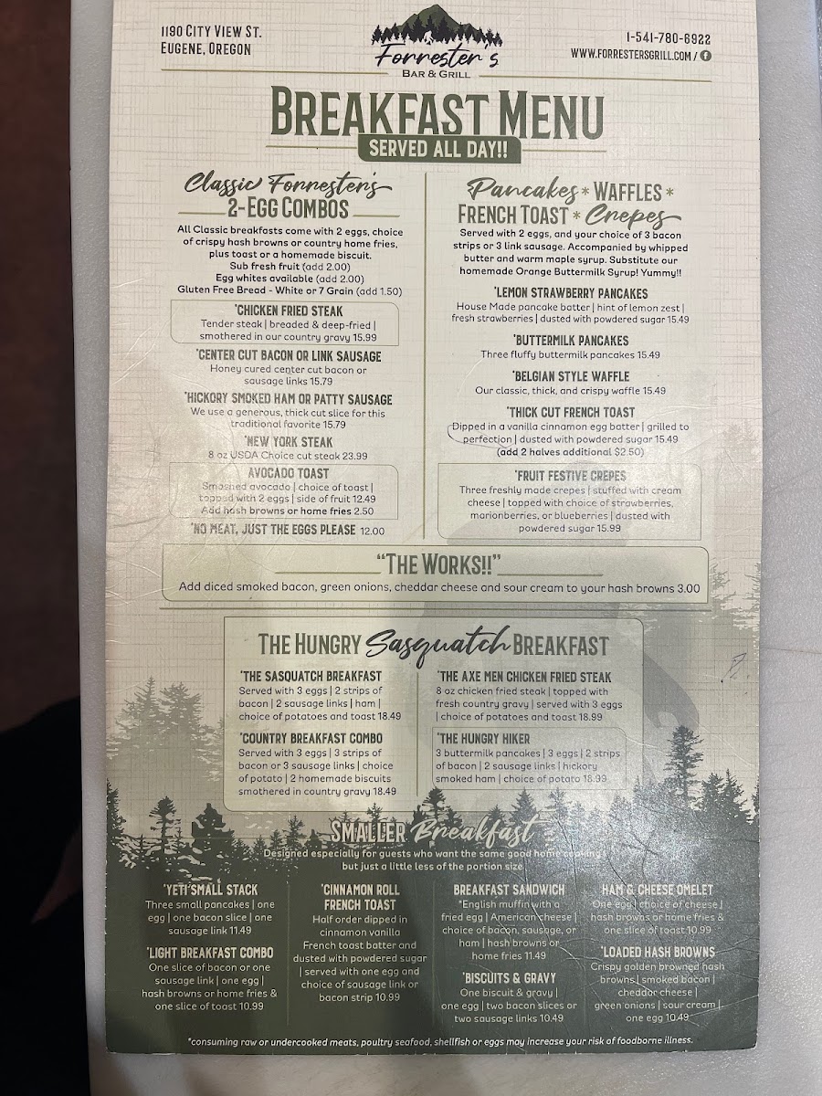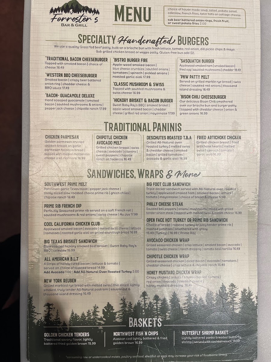 Overall, Forrester’s Bar and Grill is a must-try destination for food lovers in Eugene. With a diverse menu, friendly service, and a cozy atmosphere, this restaurant is sure to become a favorite spot for locals and visitors alike. Whether you're looking for a quick bite or a leisurely meal, Forrester’s Bar and Grill has something for everyone.